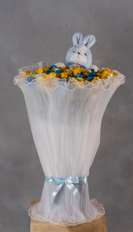 باقة الروز الأزرق والاصفر